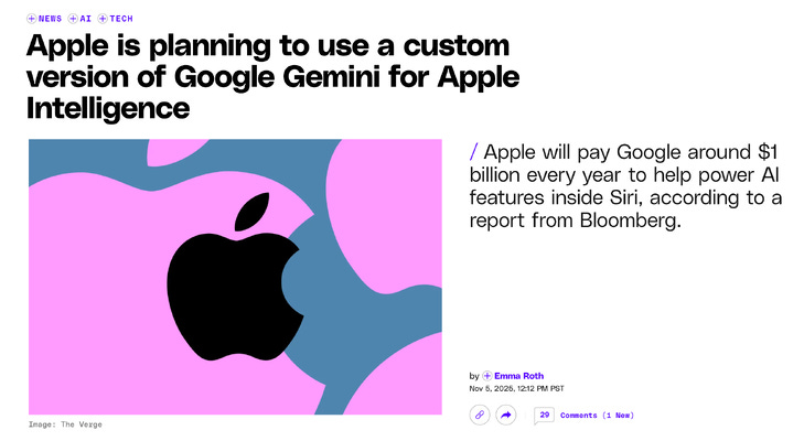 [5] Apple is planning to use a custom version of Google Gemini for Apple Intelligence - The Verge