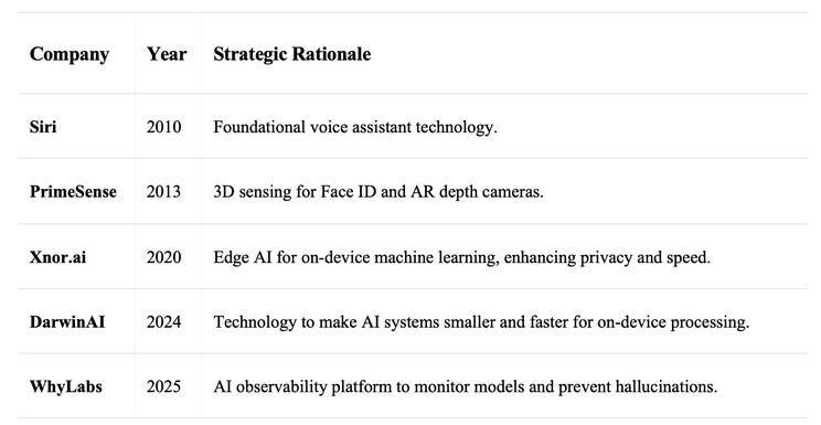 The initial phase would focus on fully leveraging the partnership with Google to bring world-class AI features to market immediately. Simultaneously, this period would be used to accelerate the acquisition of on-device AI startups, focusing on talent and technology that can strengthen Apple Intelligence and be integrated into the core operating system.