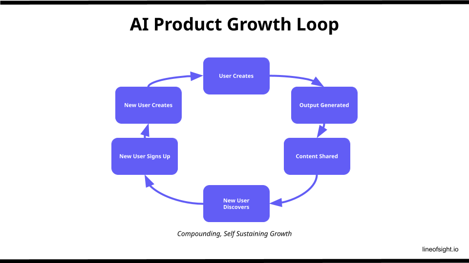 In the age of AI, this outdated model is fatal to compounding growth. The fastest-growing AI products are not just winning with superior algorithms, they are winning with superior distribution systems. They build distribution into the product itself. Their growth is not a function of marketing spend, but a result of how users naturally interact with the product. This creates a system of compounding, sustainable growth that is incredibly difficult for competitors to replicate.