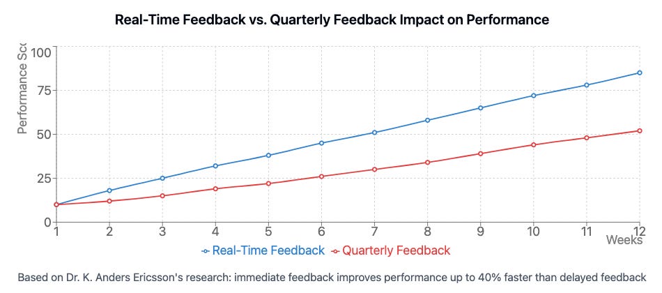 “The frequency of feedback is directly proportional to the rate of skill acquisition. Research shows that immediate feedback improves performance up to 40% faster than delayed feedback.” — Dr. K. Anders Ericsson