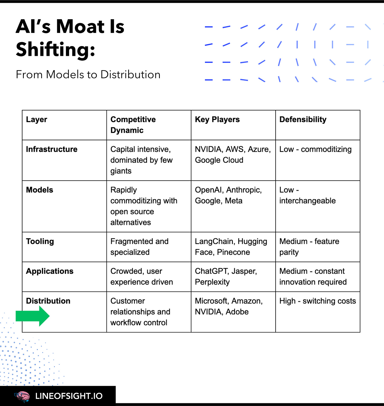 Distribution has always been a moat. What is different now is the speed. Models commoditize in months instead of years. The companies that build first, iterate fastest, and distribute best will hold the durable advantage.